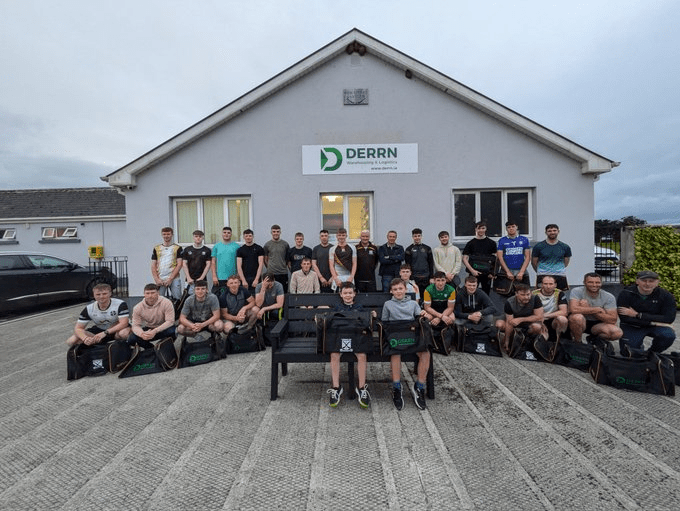 Our Senior team that recently won the Leinster League were presented with gear bags by our club sponsor DERRN Ltd. We are very grateful to them for their continued support of our club. Ronan Mooney and sons from DERRN are pictured with our senior panel and committee members.