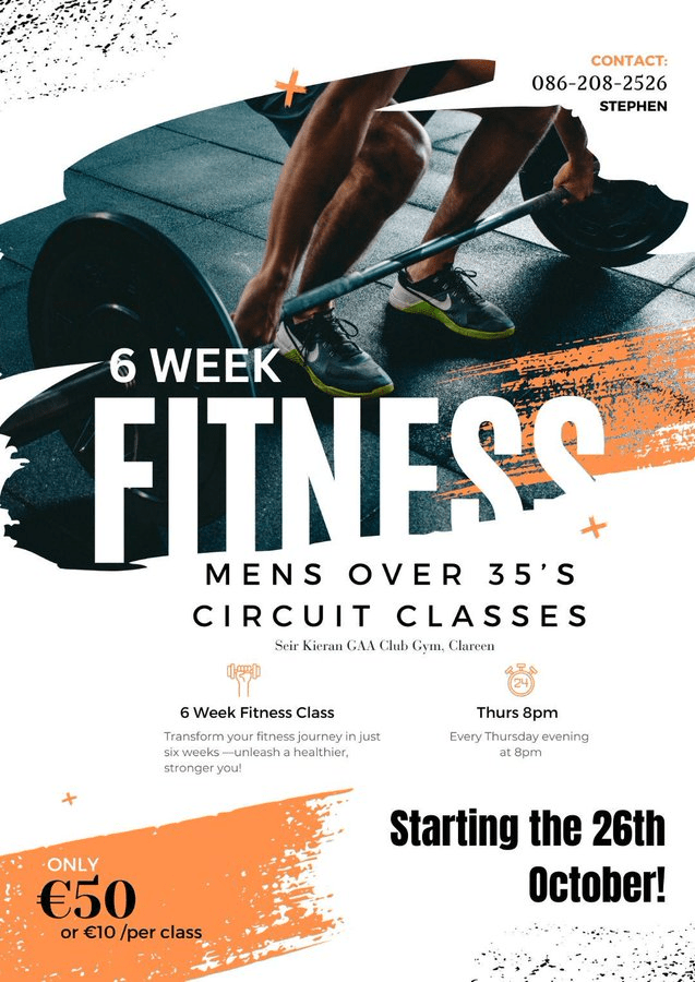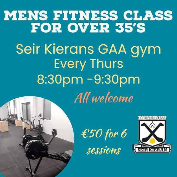 Mens fitness classes for over 35s return this coming Thurs from 8:30pm to 9:30pm. Get fit in a fun, supportive environment. All levels welcome. Classes led by Stephen and Kevin Mahon. Its great value at just €50 for 6 sessions. DM to book your place or just come along on Thurs