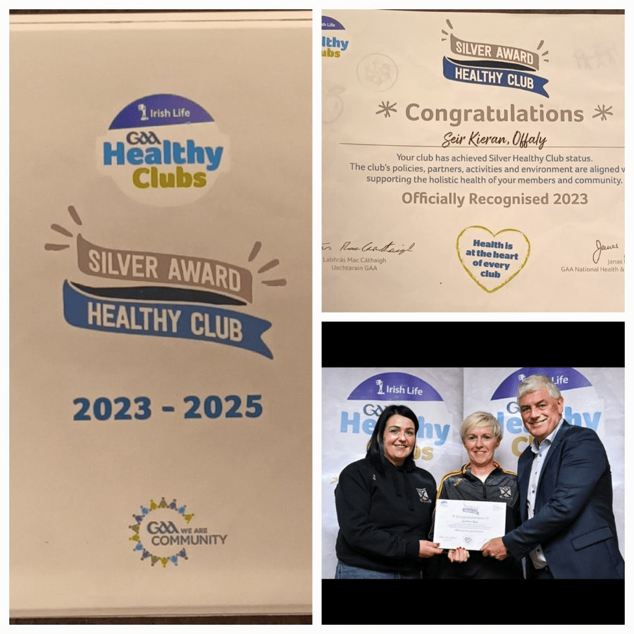 Seir Kieran GAA are very proud to receive the Silver Award at the Irish Life GAA Healthy Club Recognition event held recently in the Kileshin Hotel Portlaoise. Hugh, thanks to the Healthy Club Committee past and present and all volunteers who helped on the path to this award.